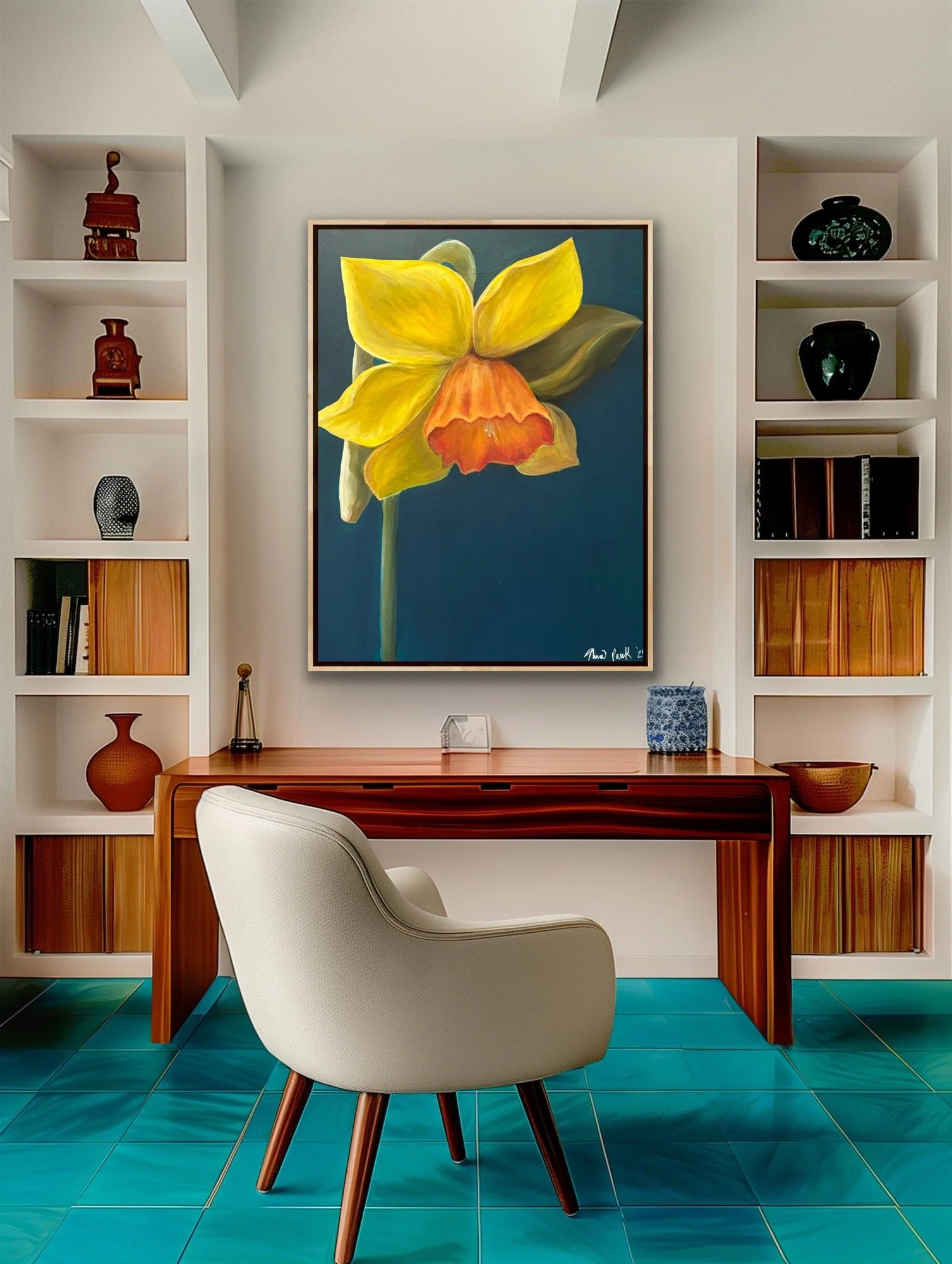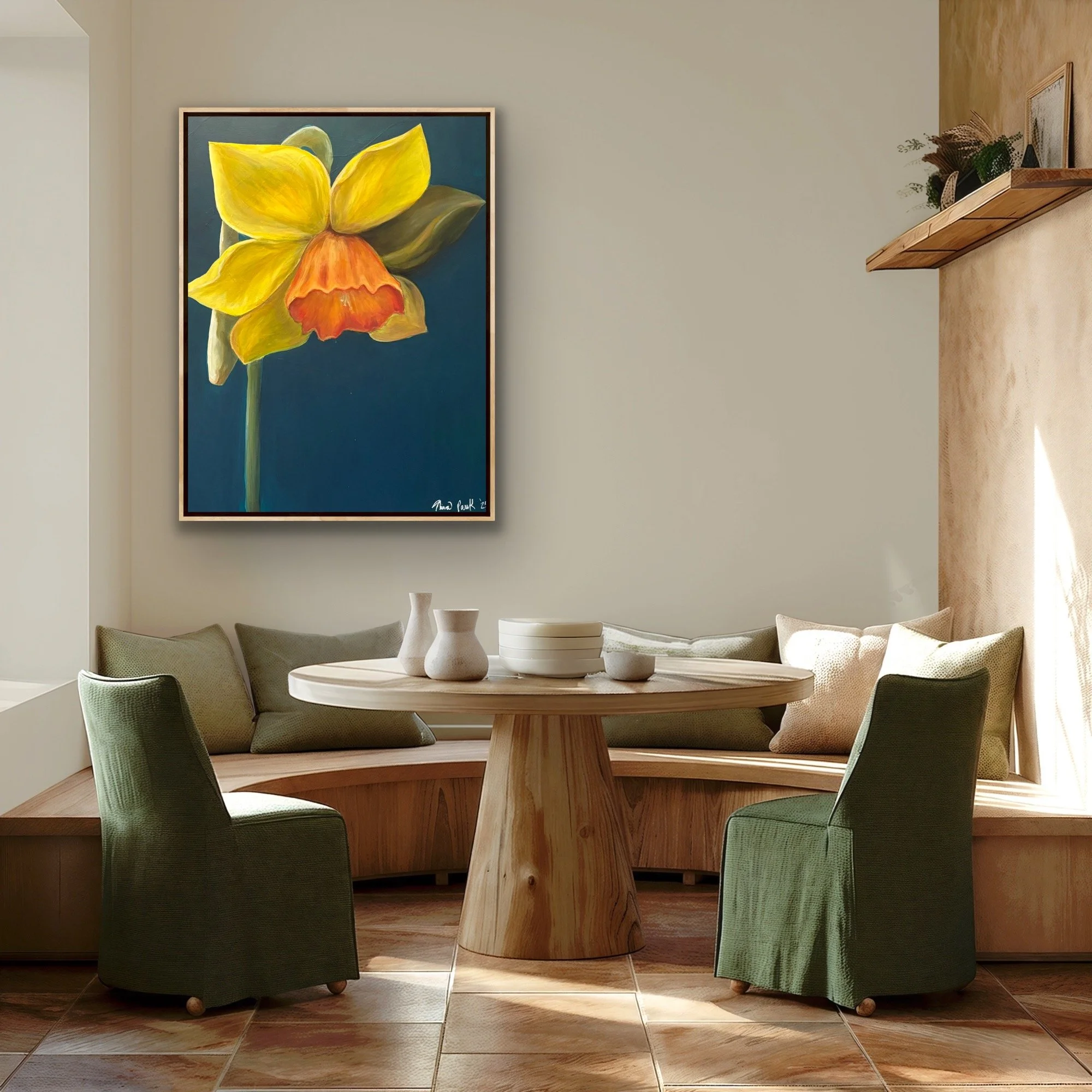 The first to rise from winter’s soil, announcing the arrival of spring. Daffodils speak to resilience, hope, and the promise of renewal. Just as it dares to emerge through the cold, we too find strength to push through life’s darker seasons. This painting is a reminder of that courage, a celebration of the light that returns when we need it most.